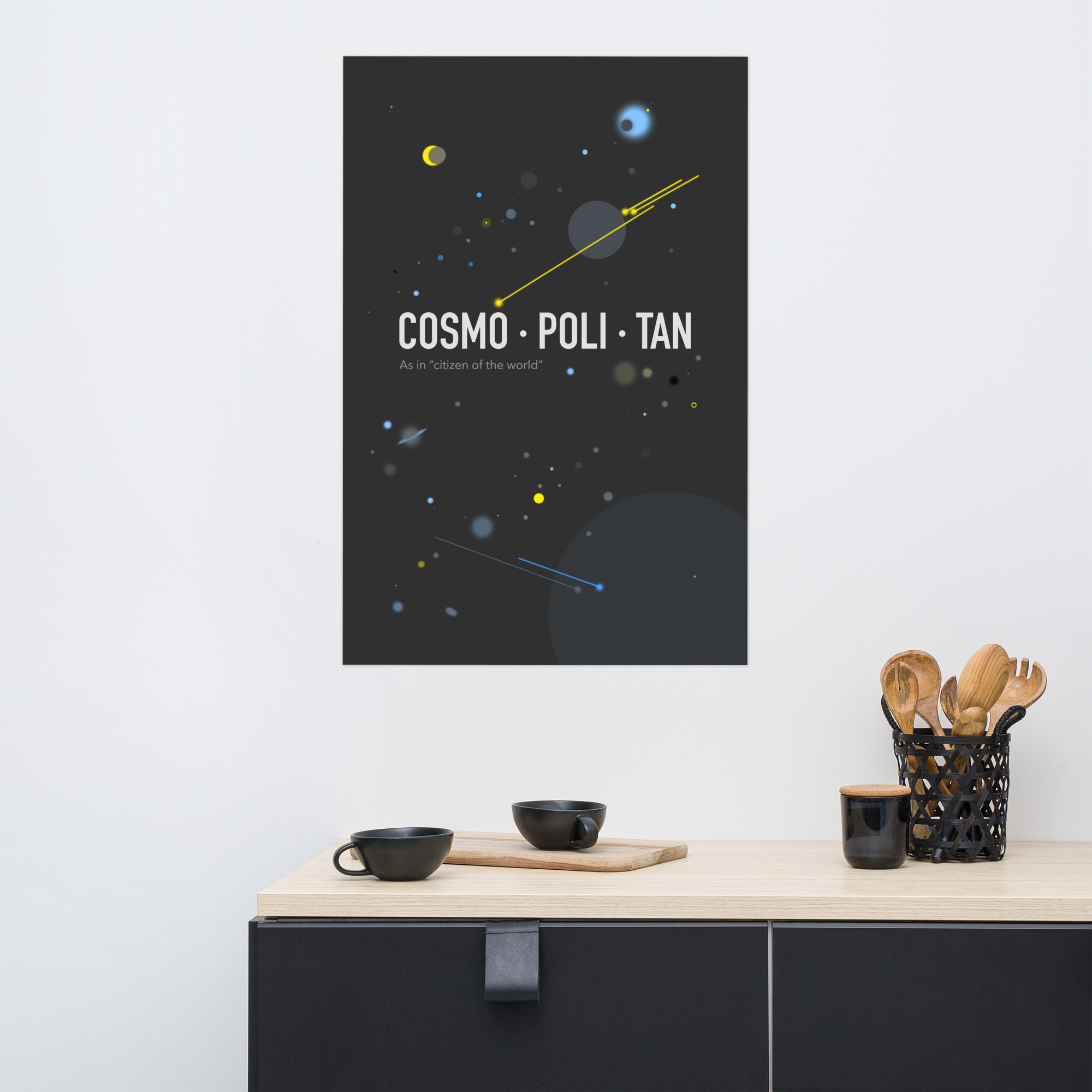 He explained its Greek roots ('cosmos' as in universe and 'polis' as in city), suggesting that it meant someone who was at home anywhere, "belonging to all parts of the world, limited to no place or society" ... someone who was worldly in ideas and life.